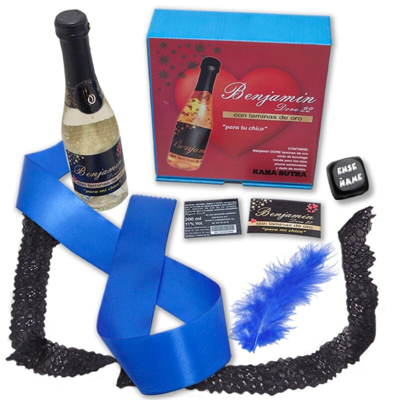 CASE with a BENJAMIN DORE CAVA WITH 22-KILATE GOLD PLATES with a fruity, fresh and young character, made up of a very select sparkling wine WITH 22-KILATE GOLD PLATES FOR YOUR BOY.