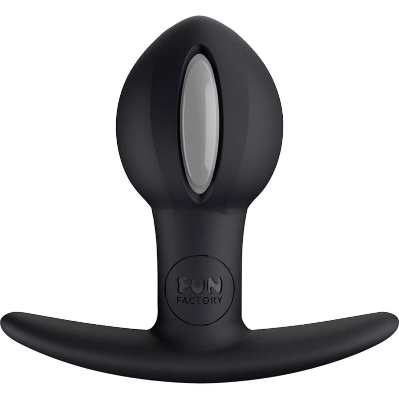 This butt plug is anything but a lazy bottom! Anytime you move, the weighted ball inside the B BALL UNO bounces, rolls, and rumbles in response! Get more from the motions of partner sex, with a plug that gives you powerful feedback with every thrust. Wear it during vaginal sex for an extra feeling of fullness: its round shape will angle your partner or favorite dildo! into your G-spot and maybe even let your partner in on the B BALL UNOs unique sensation! Feeling like youd rather lie back and enjoy? Press a powerful vibrator against the B BALL UNOs base, and feel the balls inside respond! Plus, the B BALL UNO is great for adding extra spice to a spanking or just for a silent, secret thrill while you go about your day. Its tapered tip helps you slide it right in, and the flexible silicone base fits snugly between your cheeks and moves with your body, making the B BALL UNO the most versatile plug in your arsenal. Like it bigger? Then check out the B BALLS DUO. They come with the same technique, but two balls for extra deep stimulation!
